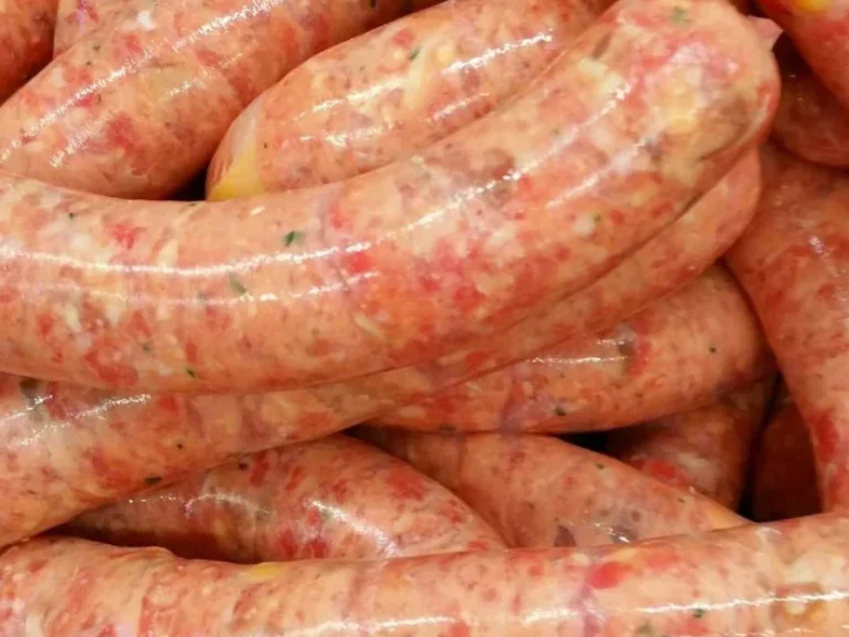 6kg Schweineschulter schier (entsehnt) 4Kg magerer Bauch. Hierbei kann der Bauch ruhig etwas kerniger sein (fetter) dann bleibt die Wurst auch nach dem Braten in der Pfanne oder nach dem Grillen schön saftig! Mit unserer Komplett-Gewürzmischung nach Angaben würzen durch die 3 mm Scheibe Wolfen und gut durchmengen dann in 30/32 Schweinedärme abfüllen und mit einer Nadel/Stipper einstechen das die Luft entweicht. Dann am besten auf einem Stock die Wurst schön auseinander hängen das sie sich nicht berührt und überall schön Luft durchziehen kann. Für eine halbe Std. Abtrocknen lassen ab in den Kühlschrank, einfrieren oder direkt in die Pfanne/ Grill.Die Mengenangaben kann man natürlich nach eigenen Vorstellungen verändern, man sollte aber immer darauf achten dass der magerfleisch Anteil in dem Falle die Schulter immer zwei Kilo mehr beträgt wie der fettanteil in diesem Fall der Bauch! Wir empfehlen bei unserer Pizza-Bratwurst noch 100-150g pro Kg Rohmasse klein gewürfelter Edamer oder nach eigenem Geschmack.
