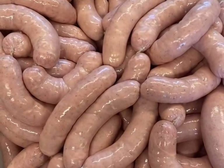 6kg Schweineschulter schier entsehnt) oder Nacken. Dann 4Kg magerer Bauch. Hierbei kann der Bauch ruhig etwas kerniger sein (fetter) dann bleibt die Wurst auch nach dem Braten in der Pfanne oder nach dem Grillen schön saftig! Mit unserer Salz & Gewürzmischung nach Angaben würzen durch die 3 mm Scheibe Wolfen und gut durchmengen dann in 30/32 Schweinedärme abfüllen und mit einer Nadel/Stipper einstechen das die Luft entweicht. Dann am besten auf einem Stock die Wurst schön auseinander hängen das sie sich nicht berührt und überall schön Luft durchziehen kann. Für eine halbe Std. Abtrocknen lassen ab in den Kühlschrank, einfrieren oder direkt in die Pfanne/ Grill.Die Mengenangaben kann man natürlich nach eigenen Vorstellungen verändern, man sollte aber immer darauf achten dass der magerfleisch Anteil in dem Falle die Schulter immer zwei Kilo mehr beträgt wie der fettanteil in diesem Fall der Bauch!