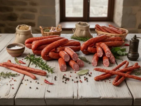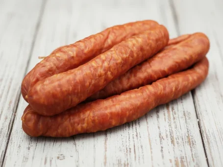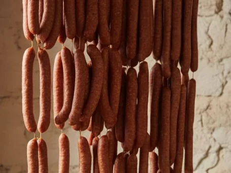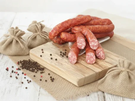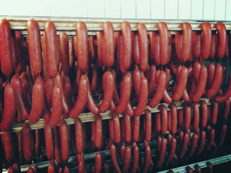 Zutaten für 10 kg Pfefferbeißer Rezeptur: 60 % Schweineschulter/Schweinenacken Rezeptur: 40 % Schweinebauch Nachdem wir die gewünschte Menge Rohmasse zusammengestellt haben, wird diese mit unserer Gewürzmischung „Pikante-Pfefferbeißer vermengt und durch die 3–4-mm-Scheibe gewolft. Die Rohmasse wird nun durchgemengt, bis eine gute Bindung entsteht. Nun wird die Rohmasse in 24/26 Därme gefüllt und bei 20/22 °C gut 8 Std. umröten und trocknen lassen. Dann werden die Pfefferbeißer bei 20°C über Buchenrauch geräuchert. Nach dem Räuchern die Pfefferbeißer etwas aushängen lassen und dann genießen.