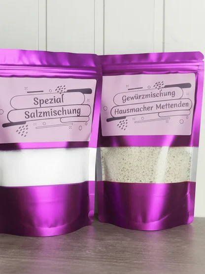 Zutaten für 10kg Mettenden Rezeptur: 60 % Schweineschulter/Schweinenacken Rezeptur: 40 % Schweinebauch Nachdem wir die gewünschte Menge Rohmasse zusammengestellt haben, wird diese mit unserer Gewürzmischung „Mettenden/Bauerbratwurst vermengt und durch die 3–4-mm-Scheibe gewolft. Die Rohmasse wird nun durchgemengt, bis eine gute Bindung entsteht. Nun wird die Rohmasse in 30/32 Schweine Därme gefüllt und bei 20/22 °C gut 8 Std. umröten und trocknen lassen. Dann werden die Mettenden bei 20°C über Buchenrauch geräuchert. Nach dem Räuchern die Mettenden/Bauernbratwurst etwas aushängen lassen und dann genießen.