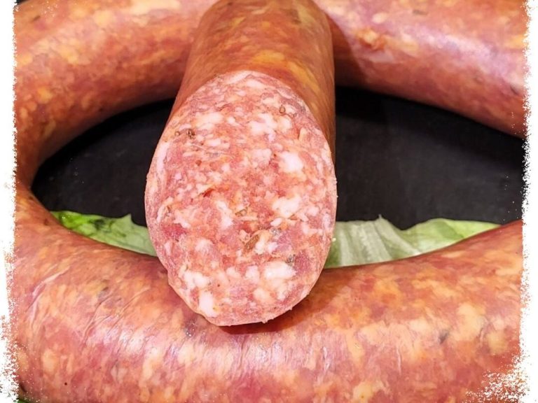 Rezeptur: 40 % magerer Schweinebauch Nachdem wir die gewünschte Menge Rohmasse zusammengestellt haben, wird diese mit unserer Gewürzmischung Westfälische-Art vermengt und durch die 3–4-mm-Scheibe gewolft. Die Rohmasse wird nun durchgemengt, bis eine gute Bindung entsteht. Nun wird die Rohmasse in 30/32 Kranzdärme oder in hukki-Därme gefüllt und bei 20/22 °C gut 8 Std. umröten und trocknen lassen. Dann werden die Westfälischen bei 20/22°C über Buchenrauch geräuchert. Nach dem Räuchern die Westfälische Mettwurst etwas aushängen lassen und dann genießen.