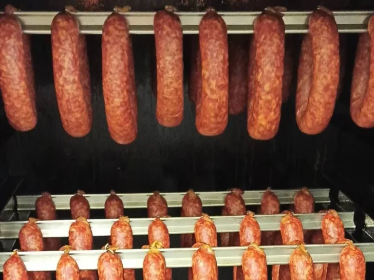 Rezeptur: 60 % Schweineschulter/Schweinenacken Rezeptur: 40 % Schweinebauch Nachdem wir die gewünschte Menge Rohmasse zusammengestellt haben, wird diese mit unserer Komplettmischung „Pikante-Pfefferbeißer vermengt und durch die 3–4-mm-Scheibe gewolft. Die Rohmasse wird nun durchgemengt, bis eine gute Bindung entsteht. Nun wird die Rohmasse in 22/24 Saitlinge gefüllt und bei 20/22 °C gut 8 Std. umröten und trocknen lassen. Dann werden die Pfefferbeißer bei 20/22°C über Buchenrauch geräuchert. Nach dem Räuchern die Pfefferbeißer etwas aushängen lassen und dann genießen.