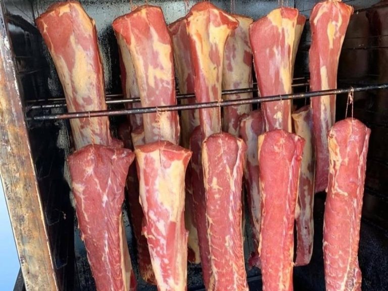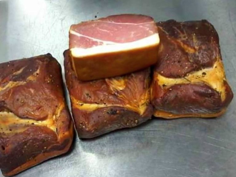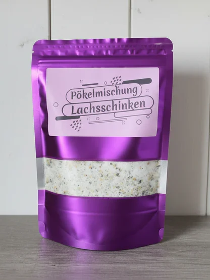 Schinkenherstellung leicht gemacht Mit unsere Pökelmischung Hausmacher Lachsschinken Empfehlung für Lachsschinken: Den Schweinelachs (Lummer) aus dem Rücken Von unsere Pökelmischung 38/40g pro Kg Rohmasse, die Schweinenuss mit der Pökelmischung einreiben und dann mit den ganzen Gewürz Vakuumieren und bei 7/9° Grad 3-4 Wochen lagern und alle 7 Tage den Schinken umdrehen. Nach der Pökelzeit den Schinken abwaschen und 4 Tage Durchbrennen lassen wenn der Schinken schön trocken ist ab in den Räucherofen und bis zur gewünschten Farbe Räuchern. Die genaue Herstellungsweise finden Sie hier auf der Seite in einem Video.
