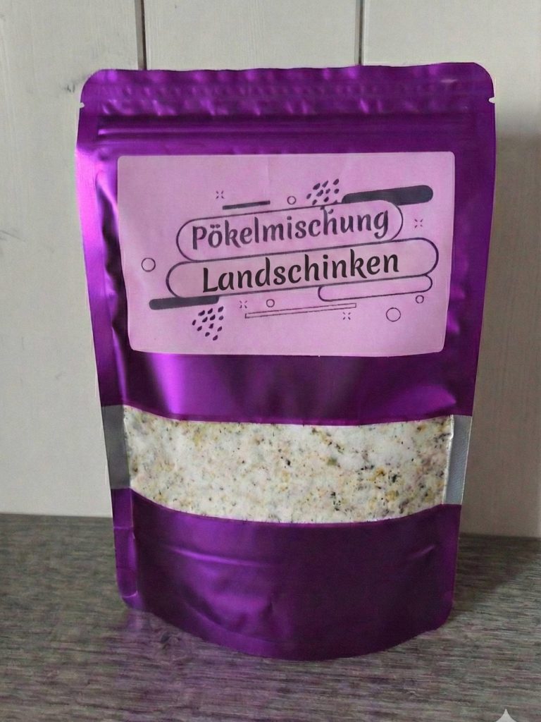 Schinkenherstellung leicht gemacht Mit unsere Pökelgewürzmischung Hausmacher Landschinken Unsere Empfehlung für den Landschinken: Die Schweineunterschale aus der Keule Von unsere Pökelmischung 38/40g pro Kg Rohmasse, die Unterschale mit der Pökelmischung einreiben und dann mit den ganzen Gewürz Vakuumieren und bei 7/9° Grad 3-4 Wochen lagern und alle 7 Tage den Schinken umdrehen. Nach der Pökelzeit den Schinken abwaschen und 4 Tage Durchbrennen lassen wenn der Schinken schön trocken ist ab in den Räucherofen und bis zur gewünschten Farbe Räuchern. Die genaue Herstellungsweise finden Sie hier auf der Seite in einem Video.