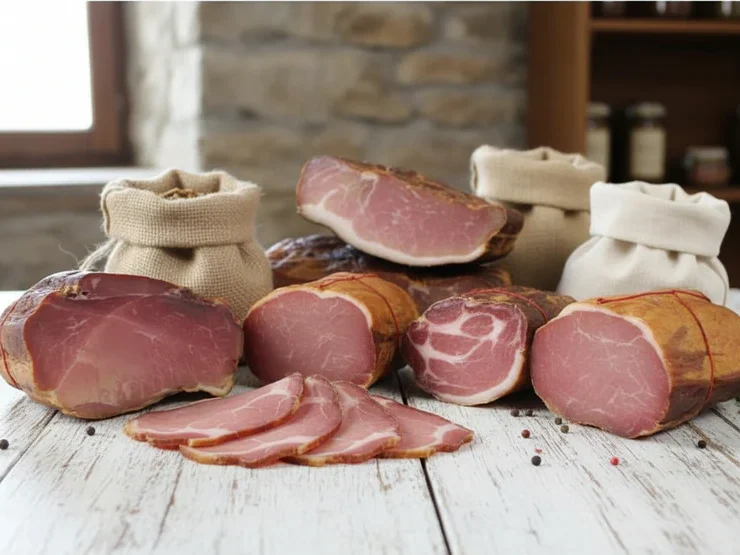 Ursprung & Geschichte: Schon die Römer und Kelten schätzten gepökelten Schinken. Eine Theorie besagt, dass Marco Polo die Kunst der Herstellung im 13. Jahrhundert aus China nach Europa brachte, eine andere sieht den Ursprung in den römischen Provinzen. Spanien (Serrano/Iberico): Luftgetrocknete Schinken haben eine lange Tradition in den Bergen (Sierra). Italien (Parma/San Daniele): Seit der Zeit der Etrusker (800–300 v. Chr.) wird in Norditalien Schinken hergestellt. Deutschland(Schwarzwälder/Ammerländer): Im feuchteren Norden und im Schwarzwald etablierte sich das Räuchern über Buchenholz, um das Fleisch haltbar zu machen. Herstellung: Schinken wird durch Pökeln (Salzen) und anschließendes Lufttrocknen (Südeuropa) oder Räuchern (Nordeuropa) konserviert